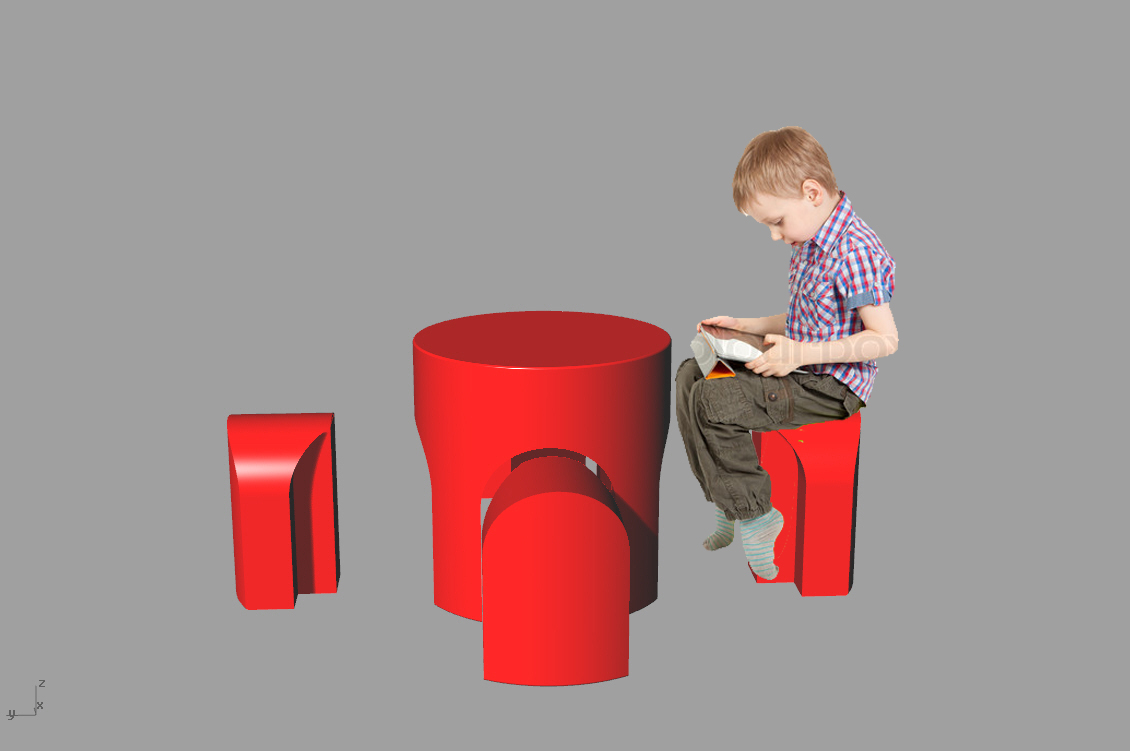 Naar aanleiding hiervan besloot ik ook een tafel te maken waarbij het idee van open en dicht een belangrijk onderdeel zou uitmaken van de tafel. Uiteindelijk kwam ik op het idee van een tafel voor kinderen waarbij de stoelen na het gebruik weer onder de stoelen geschoven kunnen worden.