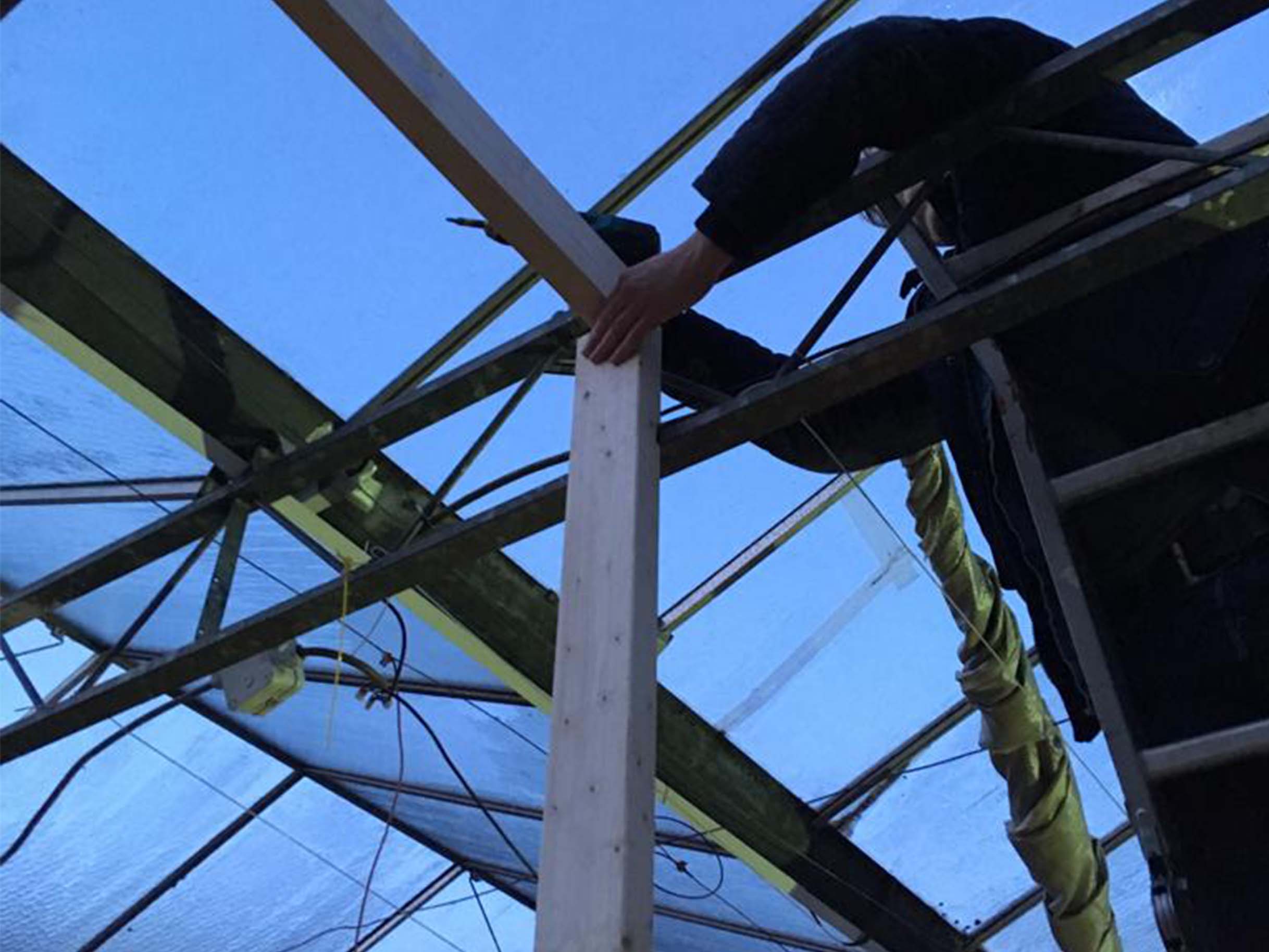 Dit was een groepsproject met 6 mensen voor de master 2 studio Lining a Shed. De opdracht was om in een kas in Blijdorp, die nu gebruikt wordt voor een markt en als werkplek voor vrijwilligers, een ruimte te creëren die fijner is om in te werken. Dit betekend warmer in de winter en kouder in de zomer, de kas heeft namelijk geen enkele vorm van isolatie en alleen doeken tegen de opwarming door de zon in de zomer. Het doel van deze studio was om dit ontwerp ook daadwerkelijk te realiseren.