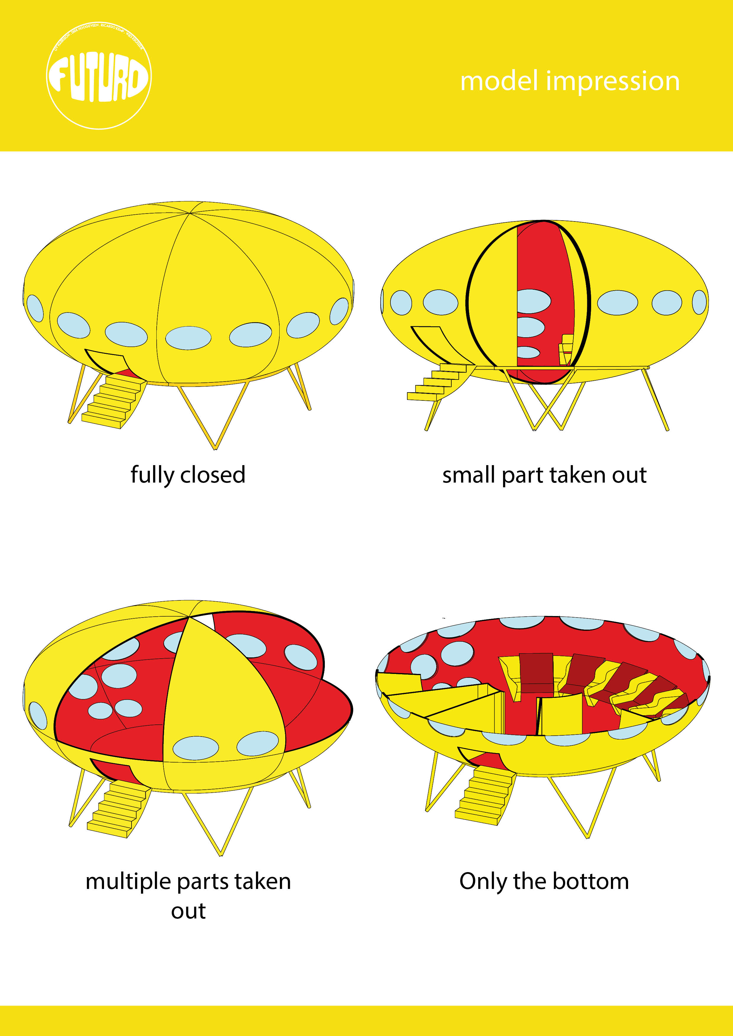 Het gebouw dat wij kozen was het Futuro House van Matti Suuronen. Dit was een geprefabriceerd huis waarvan het idee was om er veel van te maken. Uiteindelijk zijn er ongeveer honderd van deze huizen gebouwd. Het gebouw bestond voornamelijk uit plastic en glasvezel en werd ter plekke in elkaar gezet door 8 panelen aan elkaar te bevestigen.