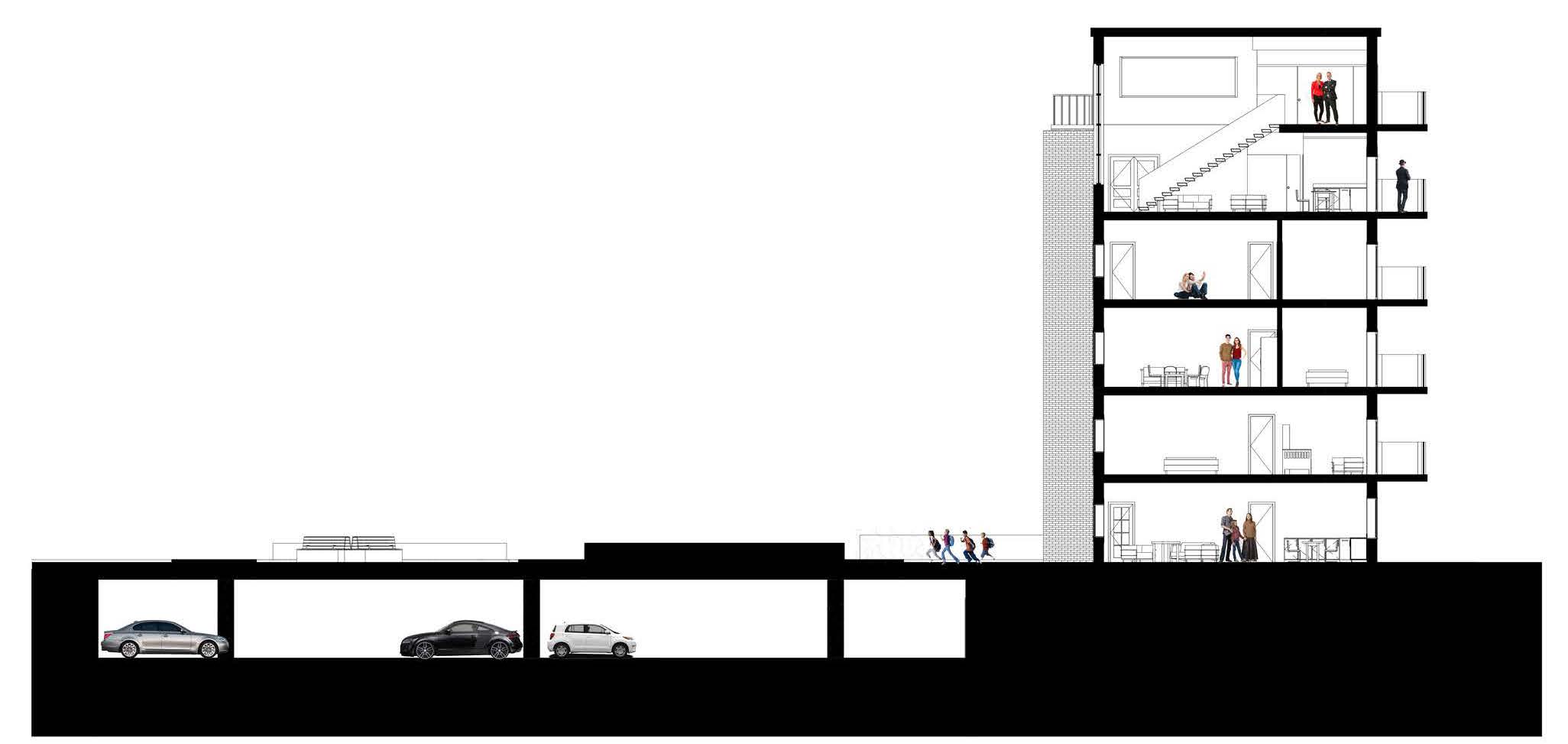 Op de begane grond werden voornamelijk seniorenwoningen gebouwd, vanwege het gemak om naar binnen te gaan zonder trappen of andere hinderende onderdelen. De verdiepingen daarboven waren voor starters en kleine gezinnen, met iets meer ruimte en op sommige bovenste verdiepingen was er een extra verdieping, waar 2 verdieping tellende penthousen waren voor de grotere gezinnen.